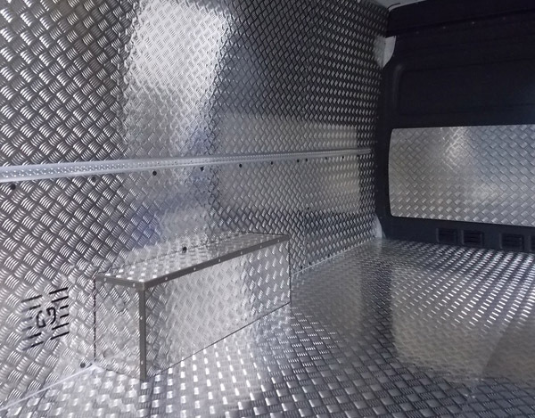 Обшивка пола и арок выполнена из алюминиевых листов на подложке из ламинированной фанеры.